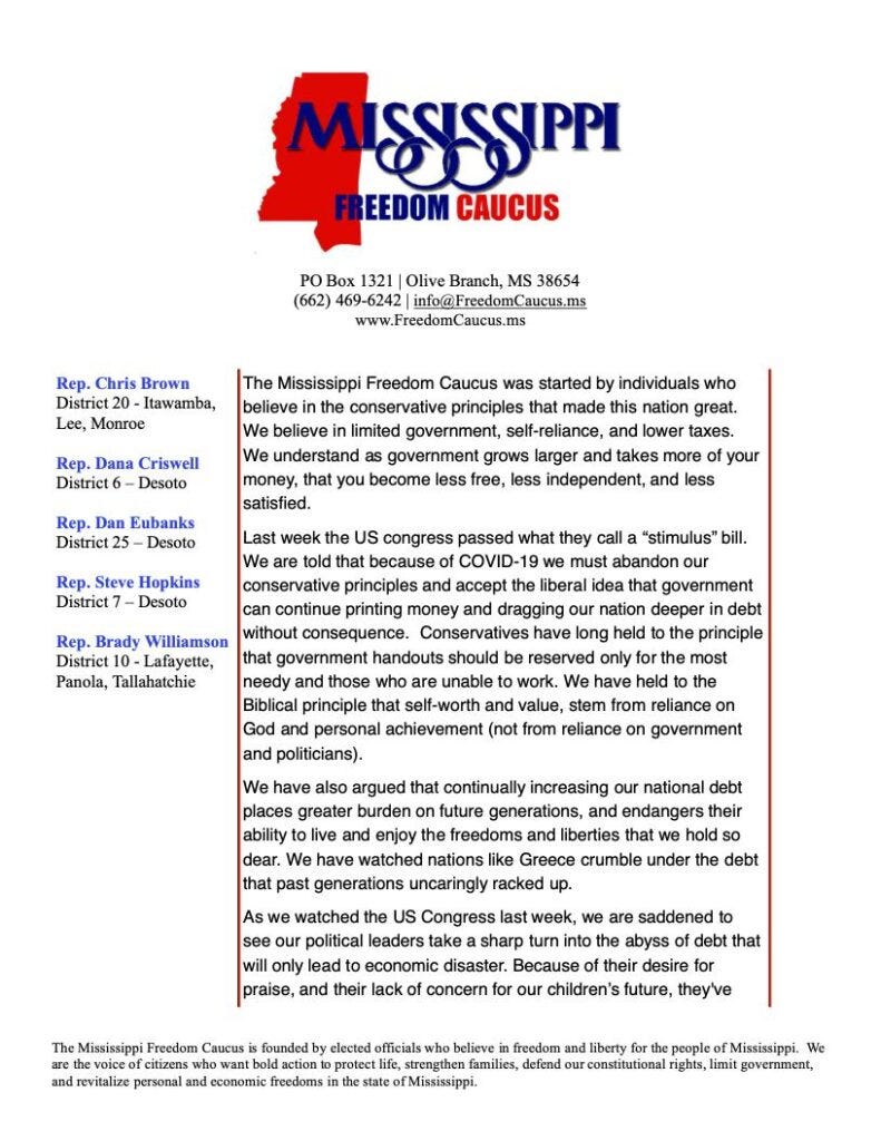 Mississippi Freedom Caucus Statement about Stimulus Bill